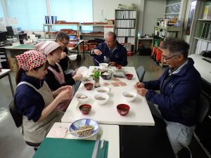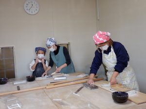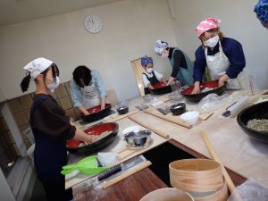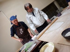 自分たちで蕎麦を打ち茹でたてを食べる。